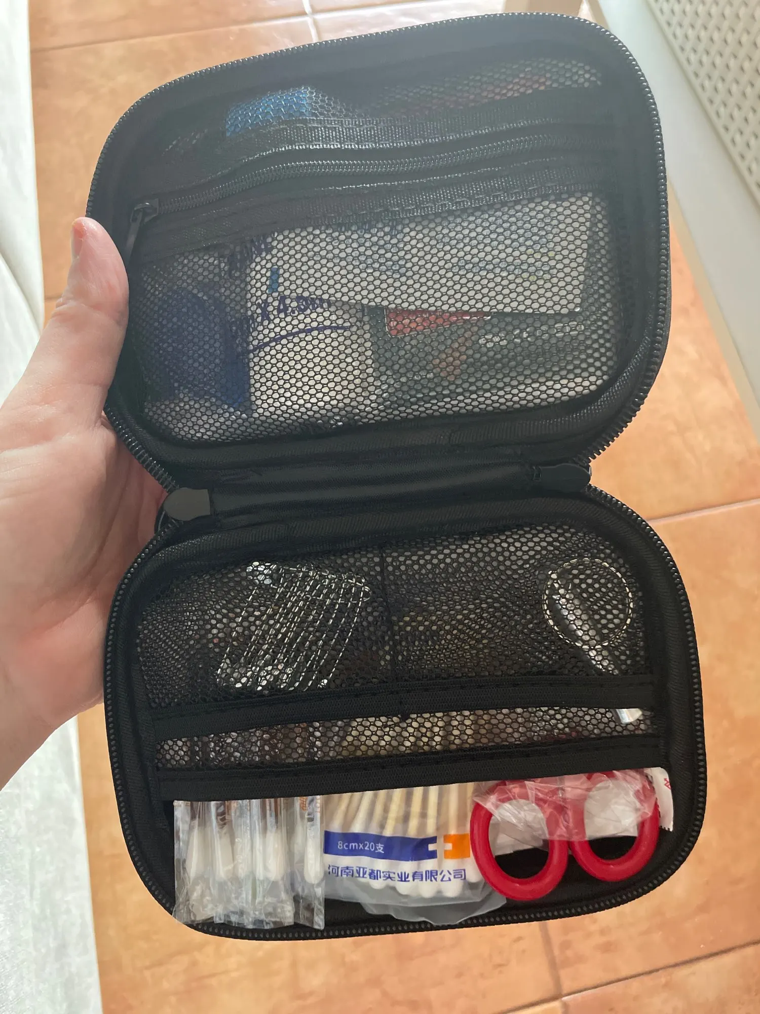 I ordered 103 pcs emergency medical first aid bag. Meaning i thought i was getting bandages and tools in my first aid bag. That is not what i got. Got empty pouch. Went to check what i ordered. They renamed it. Verse what i ordered.